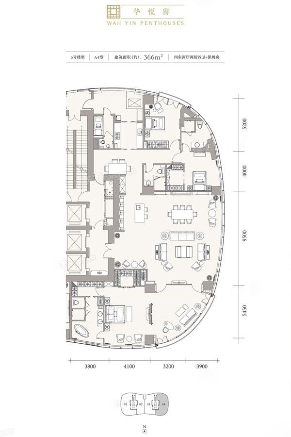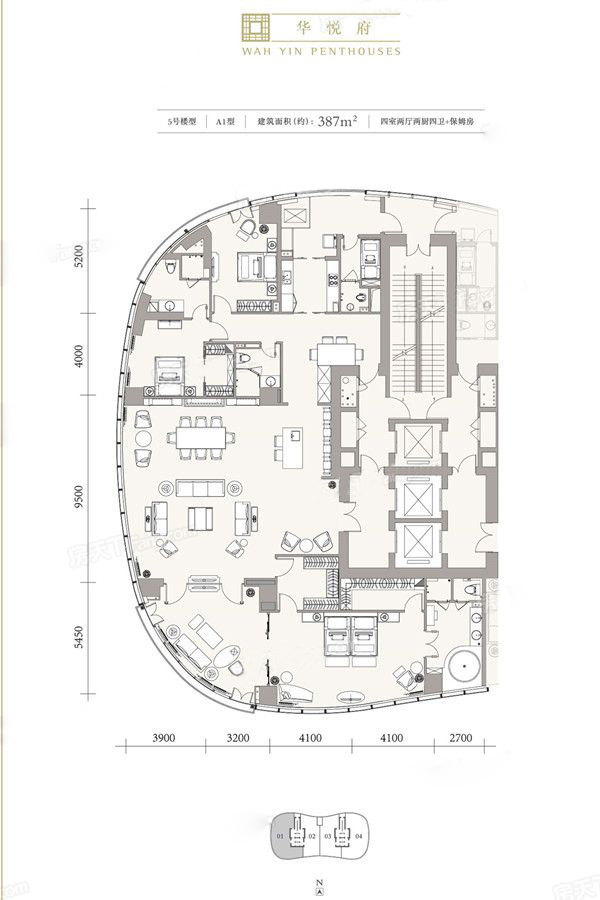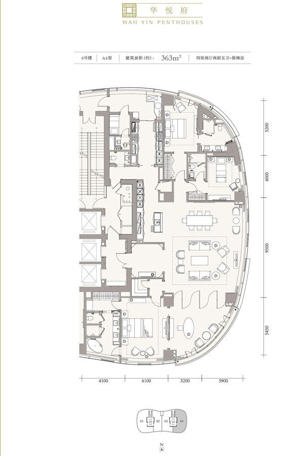 成都银泰中心华悦府位于成都天府新区金融城地带。 成都银泰中心由5栋高层塔楼及大型商业裙楼组成,集国际酒店华尔道夫、写字楼、国际精品全客层购物中心、峰境府邸华悦府、格调公寓华悦居。总建筑面积约72万平米。 精装峰境府邸华悦府 华悦府采用框架柱内配置型钢框剪结构体系,其结构强度远超一般住宅建筑标准,拥有专属双入户大堂、总裁会所,作为采用声学顾问民用建筑,华悦府充分考虑外部降噪、楼板隔声、分户墙隔音、排水隔音、室内吸音材料的运用。三梯两户的大平层设计,全系定制化私人空间,南北通透、全玻璃幕墙立面、270 度全景视野、3.5米层高。现主力户型面积约在260-390平左右。 格调阔景公寓华悦居 优雅、和谐,真实,永恒是成都华尔道夫酒店的设计原则。华悦居与华尔道夫酒店一脉相承,配家电家私,比肩华尔道夫。现主力户型面积约在80-252平左右。 超甲级写字楼 成都银泰中心写字楼依国际更高规格的办公标准打造,为跨国企业带来全新商务形象。整个办公空间拥有4.2 米超空间层高和国际尖端智能化系统。先进的节能环保变风量VAV 空调系统、离子化空气净化器和精心设计的变频恒温新风对流系统,视野开阔。 成都银泰中心in99 成都in99购物中心,总建筑面积18万平米,依托于银泰与各国际品牌公司的良好合作关系,预计将引入数十家品牌及设计师品牌。 in是由银泰奢侈品管理公司打造的全新商业品牌,从招商、运营、设计、市场等方面进行统一管理。in旗下目前有4个商业项目,北京银泰中心in01、北京王府井in88、杭州湖滨in77和成都银泰中心in99 。?