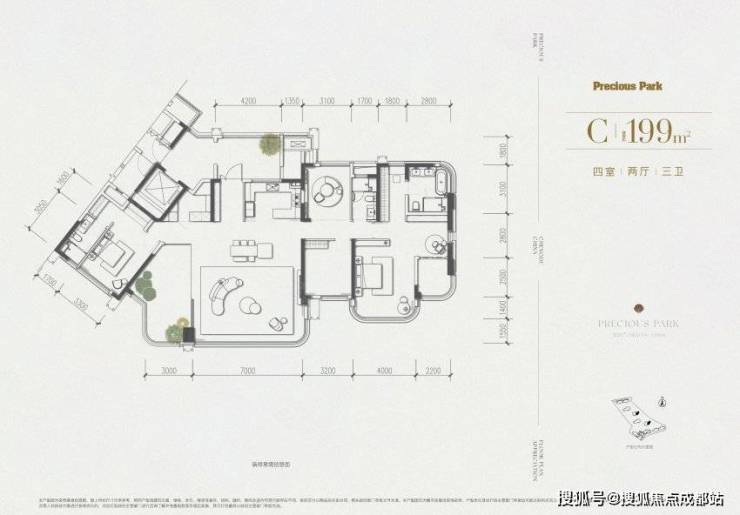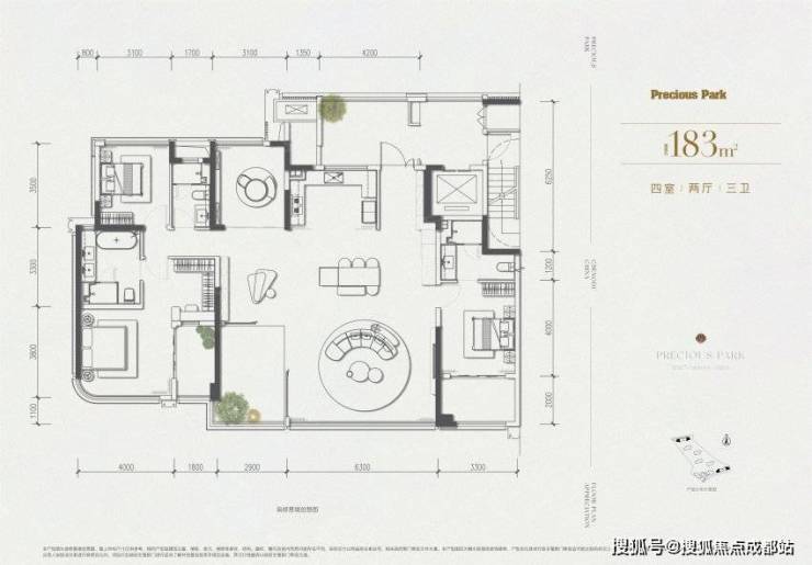 格局:家庭社交中心,开放公共区域达101㎡,主卧与老人房均为套房设计。
