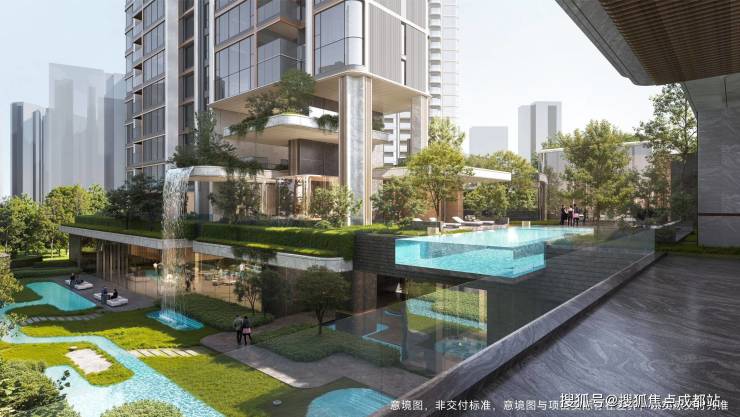 四维立体景观:首创“公园CLUB+柔性边界”设计,包含地底垂瀑、空中云庭、垂直绿廊等,将公园生态垂直植入建筑肌理。