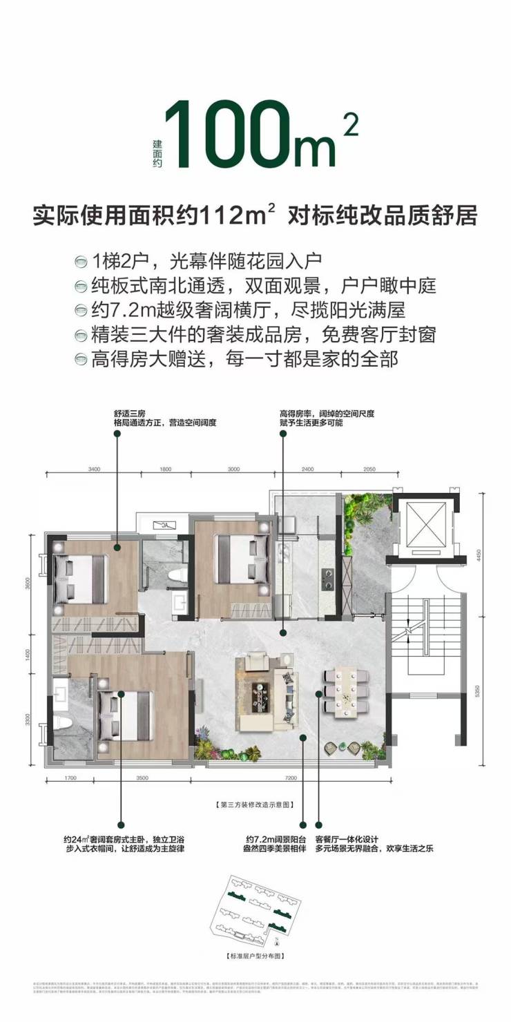 中空low-E玻璃+现代轻奢风水包砂外立面+业主会所室内恒温泳池+健身房+大面积高端石材入户大堂+仿石地砖公区过道+星空屋车库单元入户厅+全新水磨石地面+全屋交付柜体+全免费封窗。