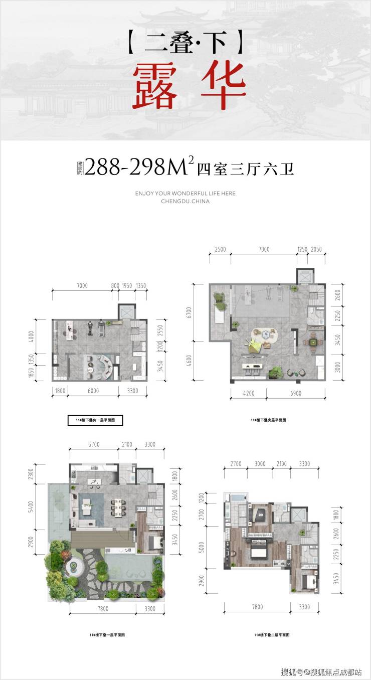 【两叠】下叠 四室三厅六卫 | 约288-298㎡
