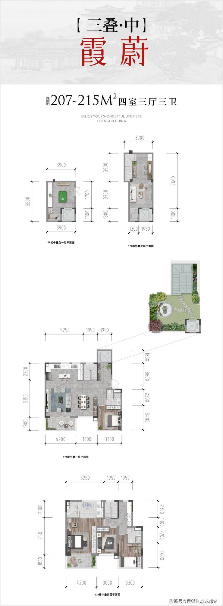 【三叠】中叠 四室两厅三卫 | 约207-215㎡