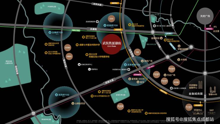 机投桥TOD(规划中)、白佛桥TOD(建设中)、双凤桥TOD (建设中)、武青南路TOD(规划中)共同形成TOD闭环,打造武侯繁华新焦点。