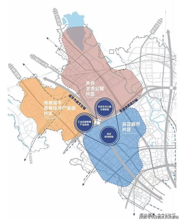 以新金牛公园为核心的茶店子-花照壁一线,官方称“茶花新城”规划面积约为0.98平方公里。以金牛大道茶店子路为中轴线,与三环外的金牛高新区、天公园片区互为犄角,共同构成了金牛极为重要的黄金三角区域。
