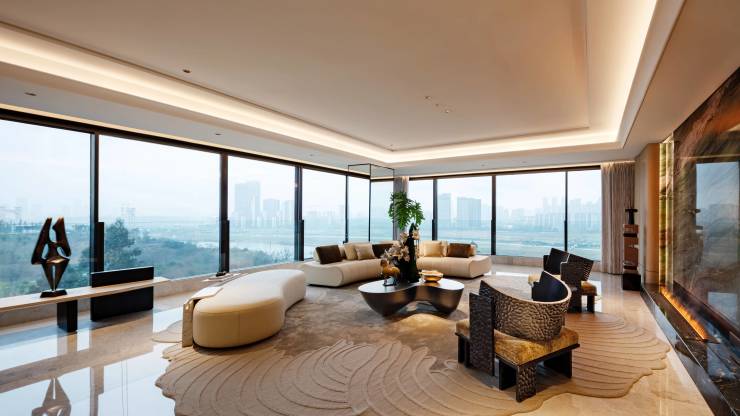 ✅ 建面270-320㎡瞰江平层(家族改善优选):国际精装交付,装修标准高达15000元/㎡;一层一户布局,270°环幕视野,将锦江、麓湖与城市天际线尽收眼底;规划双主卧套房、中西双厨,兼顾家族居住与高端社交。