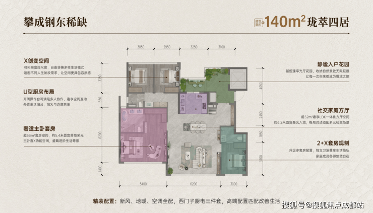面积:126-140㎡新规精粹四房