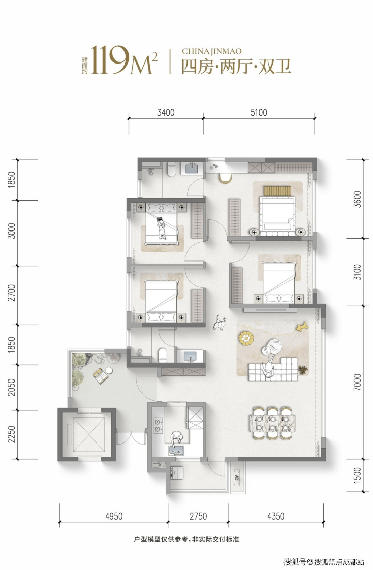 建筑面积约:110-119㎡全景超享T4 128-168㎡奢享大平层