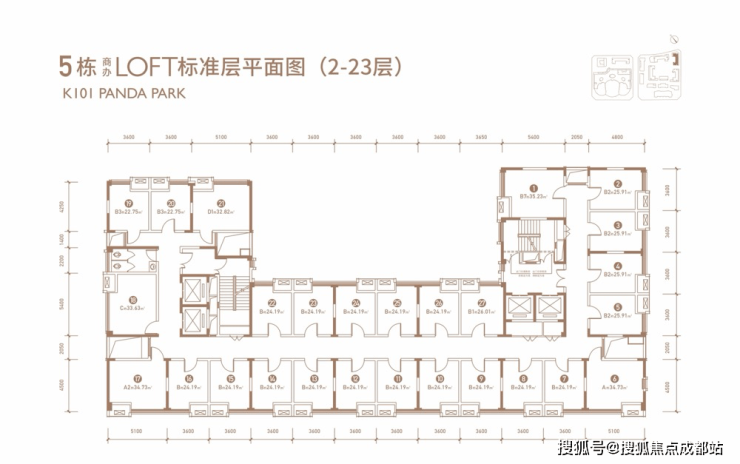 LOFT建筑面积:套一约24㎡,套二约34㎡(可售整层,5栋单层面积约709㎡ ,6栋单层面积约716㎡)