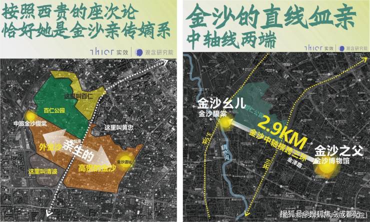 以金泽路-蜀江路为轴线的金沙核心区域,自金沙遗址博物馆始,串联燕沙庭院、雍锦园、金悦湾、凤起朝鸣等标杆住区,形成西贵圈层聚集地。