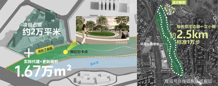 滨河公园代建项目斥资代建约1.67万㎡临河生态公园,与社区占地面积形成近1:1的绿地配比,实现真正的亲水生活体验。
