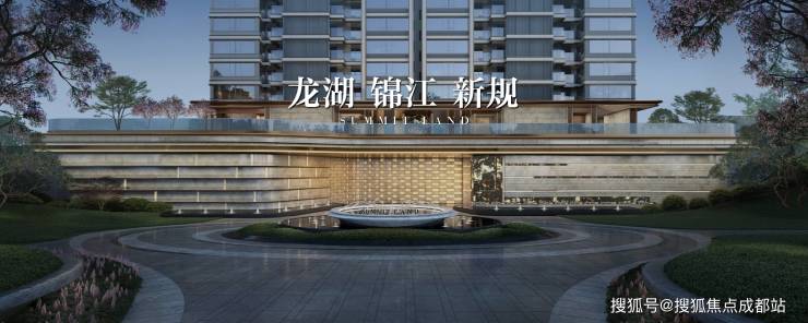 以锦江水流灵感,萃取蜀锦华贵底蕴,打造流线外立面+香槟金线条,呈现精奢立面