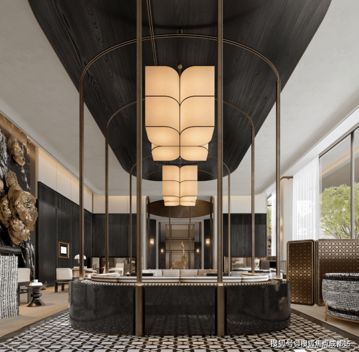 以“光”作画,光幕&绿植&石材&金属四重组合的现代摩登场域。