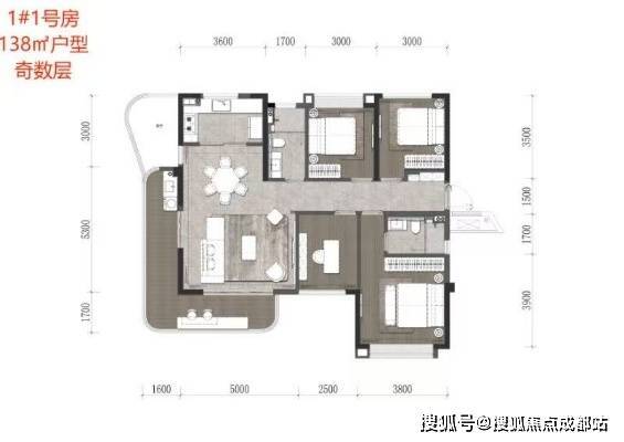 洋房:3.5-3.6万/㎡ 总价:500-630万