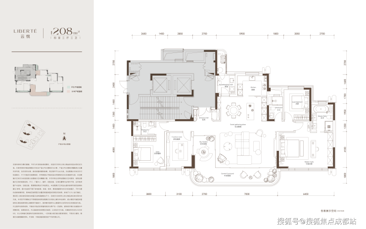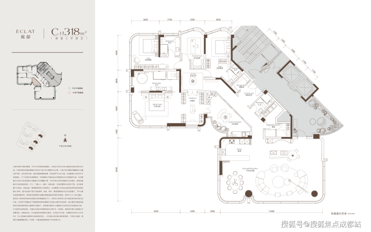 中海翡悦天华打造的是208 - 318㎡的千万级顶豪产品,将成为与489超塔同框的豪宅地标建筑。整个楼盘套均面积超过250㎡,其中300㎡以上的超级大平层占比接近三分之一,是标准意义上的CBD战略级大平层项目。它不仅代表着天东片区产品的最高能级,更因其与489超塔同框联动,成为天府封面不可忽视的重要组成部分。在翡悦天华的设计上,中海运用最新一代产品设计语言,借鉴「玖序」的成功经验,塑造出强烈的国际先锋感,让建筑与时代潮流接轨。