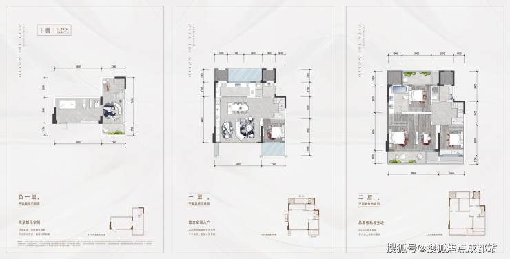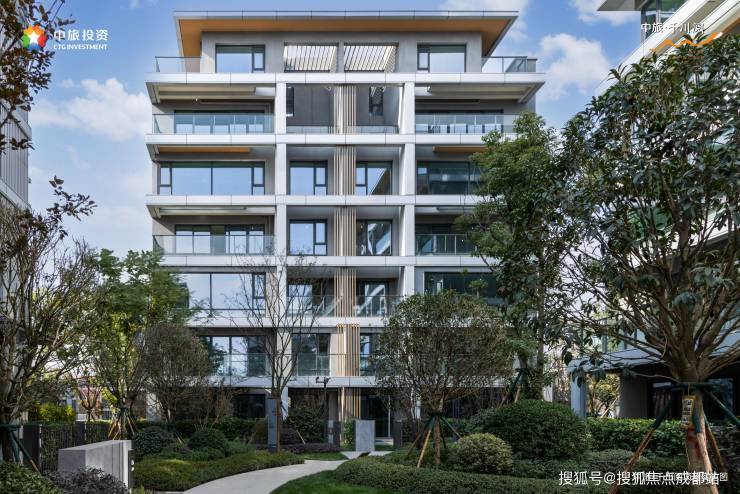 【中旅千川阅】在产品设计上尽显独特魅力。它被称为新川颜王,玻璃幕墙立面设计独具匠心。正面采用大面积玻璃幕墙加铝板线条,侧面和后面采用大面积金属栅栏和铝板线条,整体色彩采用51度高级灰,形成两个立面层次,既保证了立面色泽统一,又通过冷色调体现出高级感,突出豪宅气质,让建筑宛如一面美学之镜。 从格局方面来看,项目产品均为210 - 240㎡大平层级豪华空间,单层面积接近100平,真正以墅居尺度感打造真别墅。无论是餐客厅还是起居室,都打造出阔尺豪华空间。以建面约230㎡下叠户型为例,南向9.9m面宽,三开间朝南,三面宽是豪华级叠拼的硬性要求。与常见的老人房北置不同,该下叠的老人房朝南摆放,使客餐厅形成约42㎡的方厅。这个方厅进深够大,在容纳客厅和餐厅功能的同时,还能开辟一个多功能厅。 二层卧室区更为豪华,得益于包含阳台单层面积超过100㎡,有两大亮点。 在隐私性方面,建筑设计单位汇张思开创了三独立体系。上、中、下三叠均有各自独立的地面花园、独立地下空间、独立归家动线,这套设计的精髓在于私密性。无论地面还是地下,每一户业主都有独立、不交集的归家入户方式,业内称为“类独栋化叠拼”。