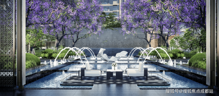 园林景观:超大水景泗水而踏,风雨连廊踏水而归,超大楼间距/户户向阳采光