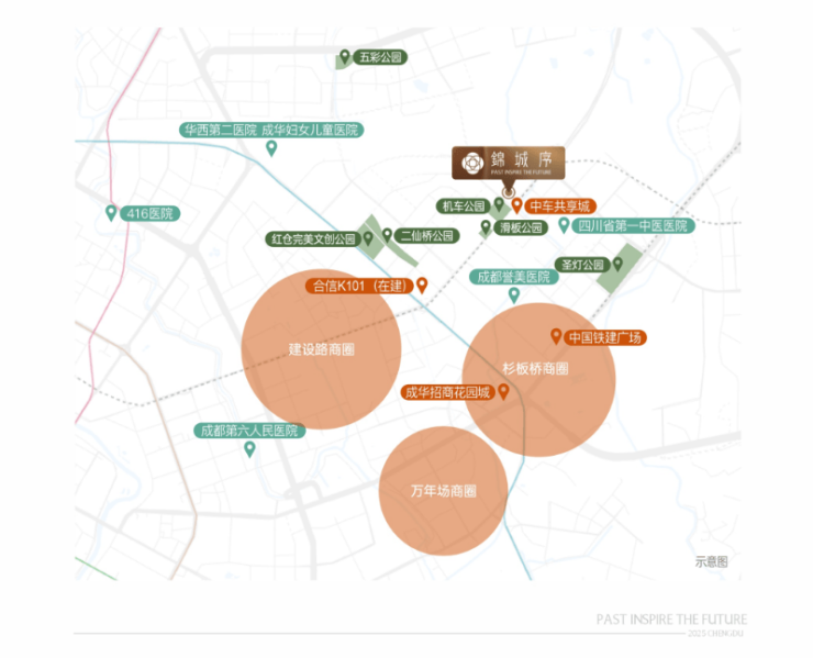 项目周边分布红仓完美文创公园、二仙桥公园、圣灯公园、机车公园等城市绿地,形成千亩级生态矩阵,为居者提供清新自然的居住环境。