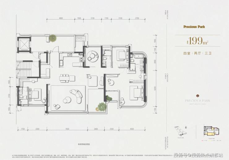 ✅ 建面约199㎡ 四室两厅三卫(明星主力户型)