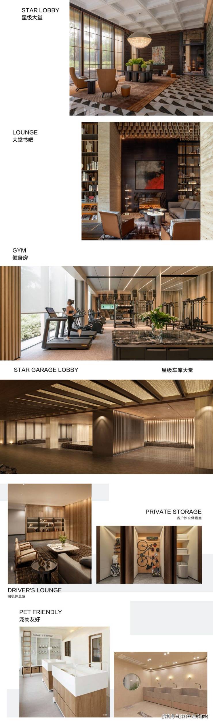 每一栋一层设置专属泛会所,由LACADIERE御用设计大师陈建中先生设计,大堂挑高空间以现代奢华的风格配置酒店式星级配套,延伸家的第二会客厅。同时配置星级车库大堂、各户独立储藏室、司机休息室、访客车位及宠物友好设施。