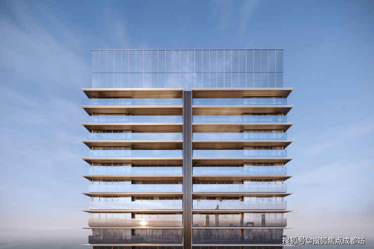 采用玻璃、铝板与石材、陶板的全幕墙体系,结合视觉黄金比例设计,以极简的线条和优雅的配色营造城市公共艺术感,打造出高端公建化的立面效果,与周边489米超塔地标及天府公园形成视觉呼应。
