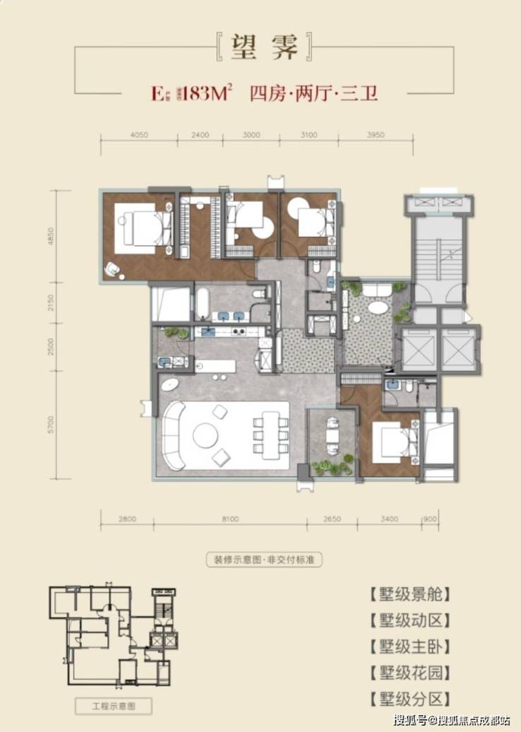 项目主打精装改善型产品,主力户型为128-183㎡全系四房,均价30000-40000元/㎡,总价区间379-730万元,得房率高达110%-115%(新规赠送优势)。交房时间预计为2026年底,物业由招商局旗下一级资质服务商提供服务,物业费待公示。
