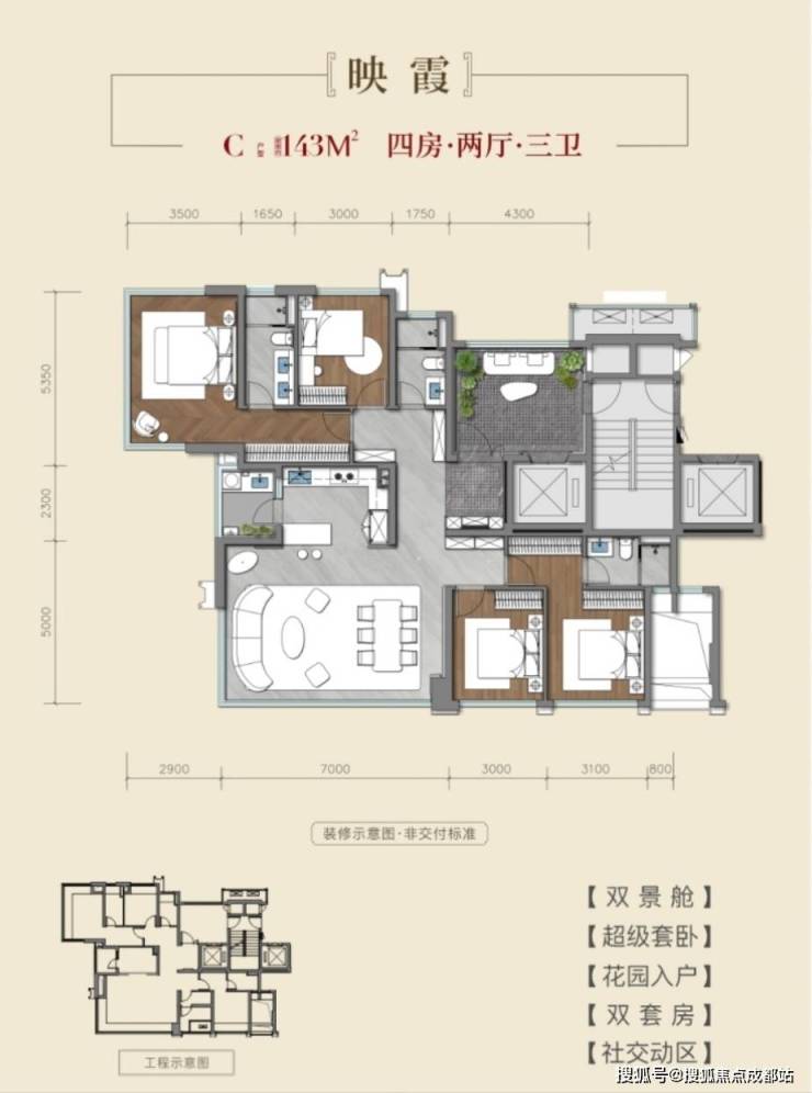 143㎡四房两厅三卫:双套房设计,解决多代起居冲突