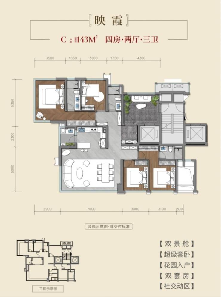 旗舰配置:LDK-R一体化方厅+270°景观阳台,独立家政间+双主卧套房,精装嵌入地暖、新风系统;
