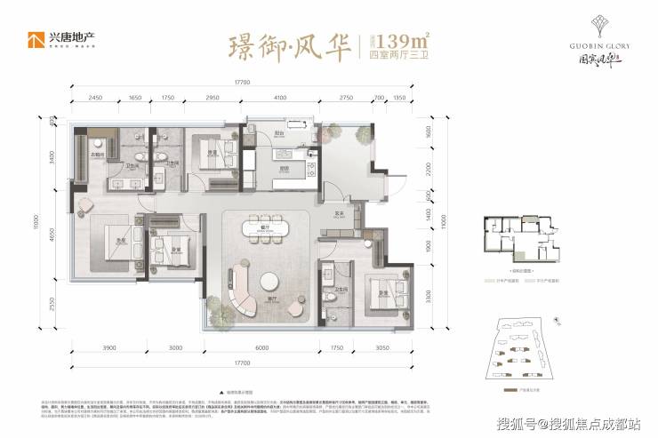 在售面积:约123-139精装四房双/三卫