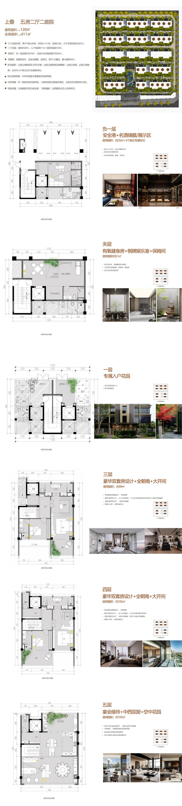 项目以“超高拓展率”为核心卖点,通过地下室、庭院、屋顶花园赠送,实现建面与实得面积1:3.4-4.4的稀缺比例。
