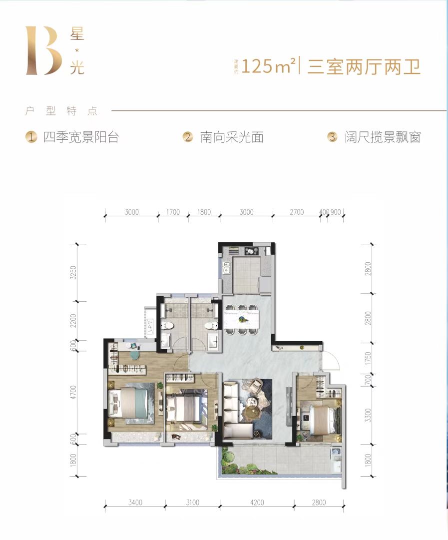 • 户型名称:B户型125平